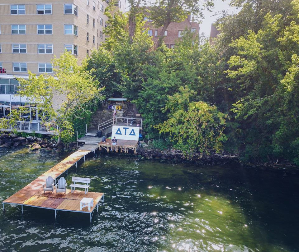 One of the most recent developments that has been very exciting for our chapter is the installation of our new, red cedar dock. After pursuing this advancement for many years, all of the brothers are excited to embrace this improved infrastructure. Although we previously did have a dock too, this new dock is longer, more spacious, and has more seating options. These key differences create a great setting for brotherhood and relaxation. Additionally, it offers an improvement to our campus relations, as members of different sororities often enjoy spending time on the dock, which in turn helps influence them to attend our social events and philanthropies. On an individual level, we are very thankful for one of our brothers, Bryce Gildner, who spent countless hours improving and maintaining our dock this summer. More specifically, he constructed a spacious deck area connecting to the foot of the dock to provide more room for brothers to socialize and enjoy the view of the lake. Also, he painted a wooden platform with our letters, ΔΤΔ, and put it up in the deck area, in order to showcase pride in who we are. He went above and beyond in his work, and we are lucky to have him as a member of this chapter. All in all, the installation of the new dock has been a great success, and provides a unique setting that not many Greek Life organizations have the opportunity to experience. We are excited to use it going forward and will continue to strive for excellence in all areas of our fraternity.